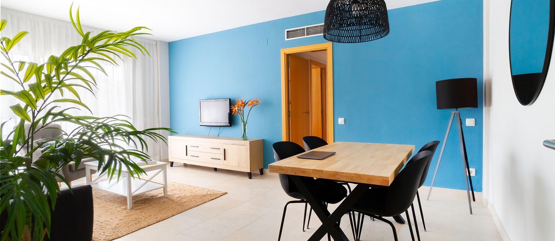 Tous les appartements ont été rénovés et redécorés avec des meubles et accessoires design de haute qualité. Tous les matelas ont également été renouvelés. Nos clients profiteront d'une atmosphère chaleureuse avec un salon spacieux, un mobilier confortable, une Smart TV 40'' et une grande terrasse, certaines d'entre elles avec vue sur la piscine résidentielle et le jardin.